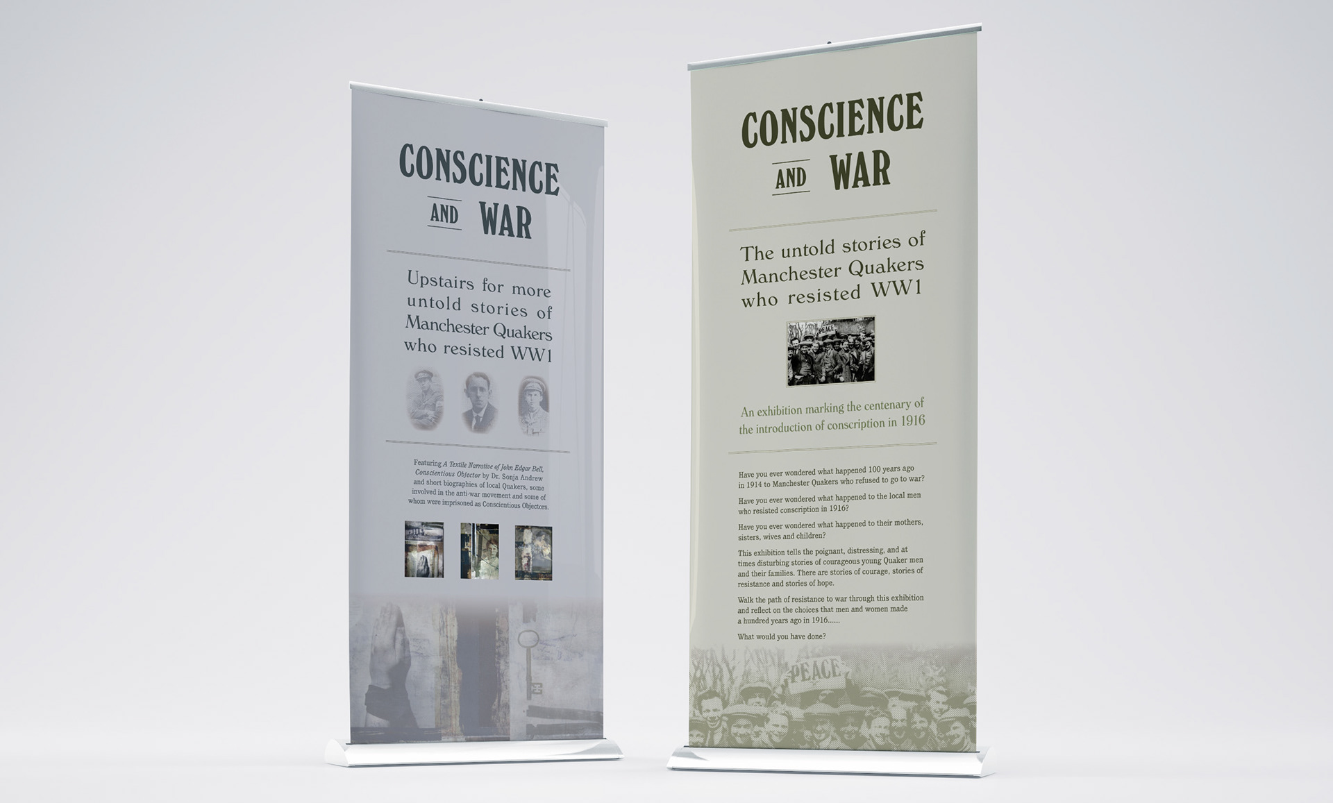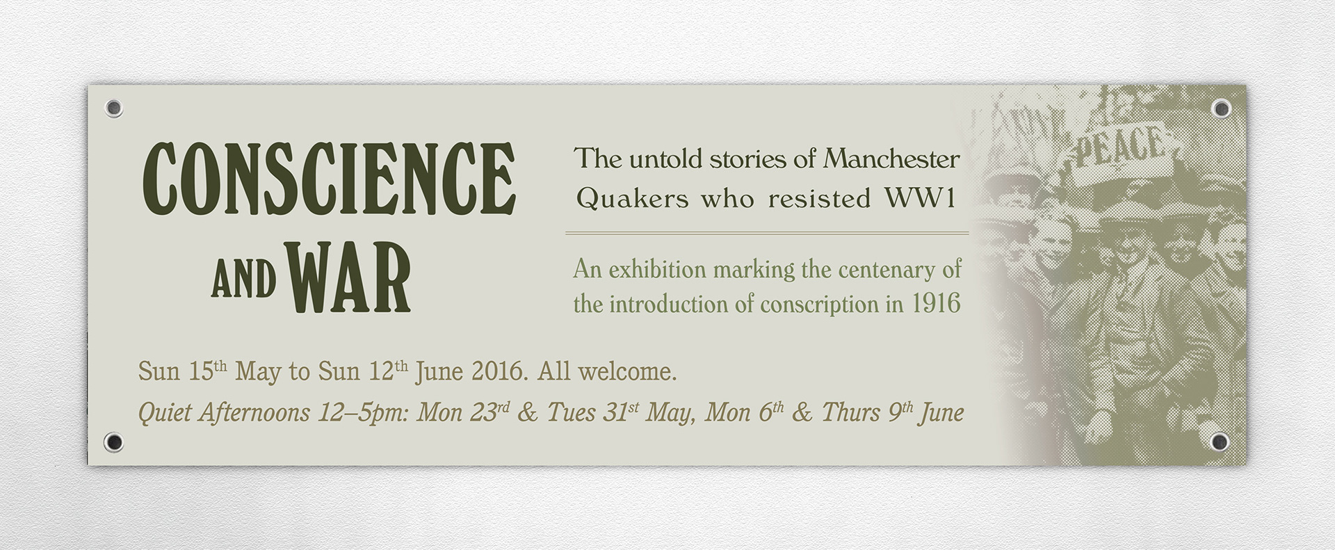 Conscience & War, the untold stories of Manchester Quakers who resisted WW1, was an exhibition marking the centenary of the introduction of conscription in 1916.