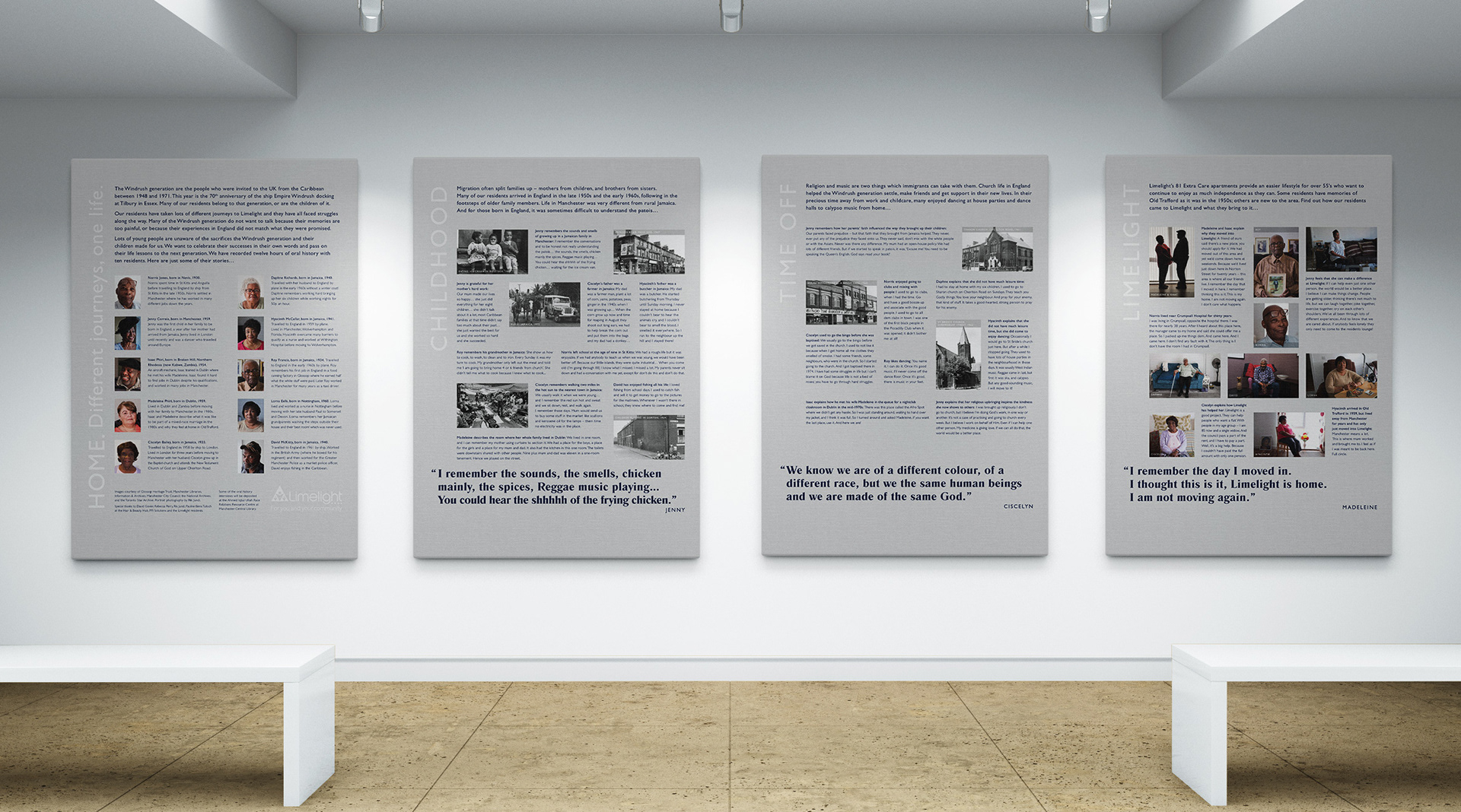 Home. Different journeys, one life, is an exhibition of portraits and biographies at Limelight, a purpose built development in Old Trafford that consists of Extra Care apartments plus a whole range of community services.